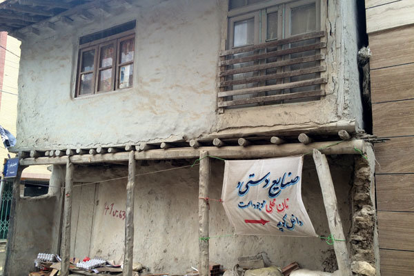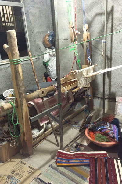 او هم مانند بسیاری دیگر از ساکنان روستای زیارت کارگاه صنایع دستی خود را به داخل گوشه ای از ساختمان نیمه کاره اش برده است.