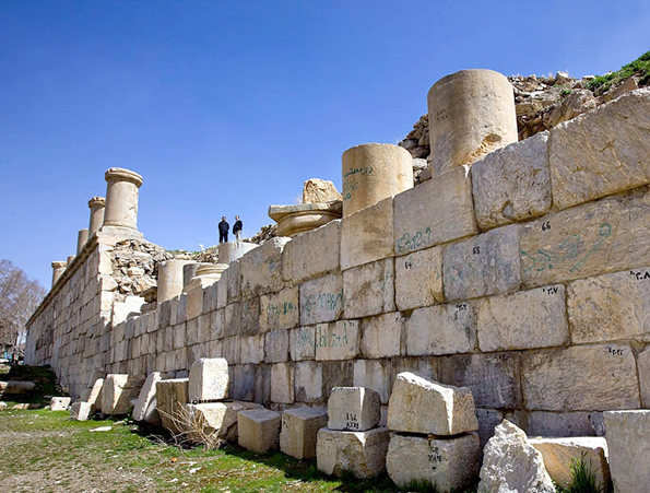این بنا دارای ۲۲۰ متر درازا و ۲۱۰ متر پهنا و کلفتی دیوار محیطی آن به ۵/۱۸ متر میرسد. فراز این اثر تاریخی ردیفی از ستونهای سنگی بر پا بوده که بلندای هر ستون ۵۴/۲ متر است. ورودی بنا به وسیله پلکان دو طرفه در جبههٔ جنوبی تعبیه شده و در جبههٔ شمال خاوری پلکان یک طرفه راه دسترسی به این مکان را ممکن ساختهاست.